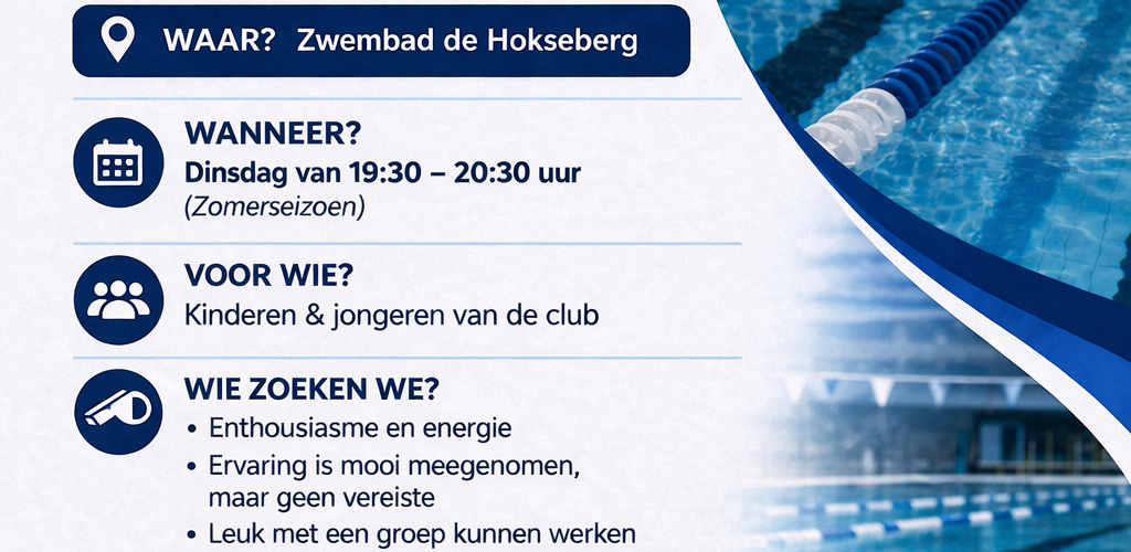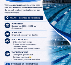 Voor ons zomerseizoen zijn wij op zoek naar een trainer óf een enthousiaste ouder die het leuk vindt om training te geven aan onze zwemmers!